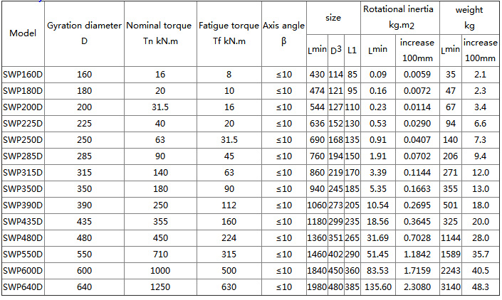 SWP-D universal coupling Features and applications: Bearings are wearing parts. In order to facilitate the replacement of the bearing, the bearing seat gland is made into a split type, bolted, and can work under the condition of β≤5°~10°. Applicable to rolling machinery, lifting and transportation machinery, engineering machinery, mining machinery, petroleum machinery and other heavy machinery, connecting two different axes of shaft drive, can not buffer, reduce vibration.