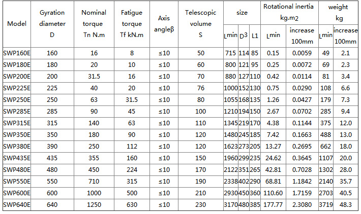SWP-E universal coupling Features and applications: Bearings are wearing parts. In order to facilitate the replacement of the bearing, the bearing seat gland is made into a split type, bolted, and can work under the condition of β≤5°~10°. Applicable to rolling machinery, lifting and transportation machinery, engineering machinery, mining machinery, petroleum machinery and other heavy machinery, connecting two different axes of shaft drive, can not buffer, reduce vibration.