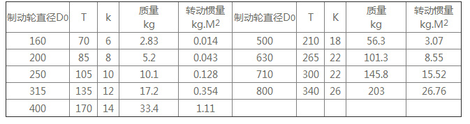 注:1、質(zhì)量與轉(zhuǎn)動慣量是按******直徑的Y軸孔計算的近似值,未計算制動輪。