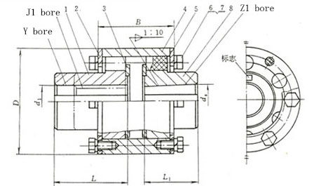 The elastic pin of the LZD type elastic pin gear coupling is turned by a nylon rod and placed in the matching hole between the two coupling halves and the outer sleeve, and transmitted through the elastic pin between the coupling and the outer sleeve. Moment, with a certain axis offset compensation and shock absorption performance. The pin can be removed and installed, and the baffle can be changed. The material is self-lubricating material and nylon is not required to be lubricated. Therefore, the LZD type elastic pin gear type coupling is easy to maintain, and has the advantages of small volume, light weight, simple structure, convenient replacement and low production cost compared with the toothed coupling. The LZD type elastic pin gear type coupling transmits a nominal torque of 100~100000N.m; the allowable speed is 4000~1500r/min; it belongs to the low speed high torque coupling. The LZD type elastic pin gear coupling is made according to the standard of GB/T5015-2003; the working temperature is -20~70°C; the axial compensation amount is ±1.5~3mm; the radial allowable compensation is 0.3~1.5mm; the angular tolerance is 0.5°. In addition, the biggest difference between the ZL (now LZ) type elastic pin gear coupling and the LZD type elastic pin gear coupling is that the LZD type pin gear coupling allows the shaft hole of one end of the coupling to be tapered. hole ![]() ![]() |