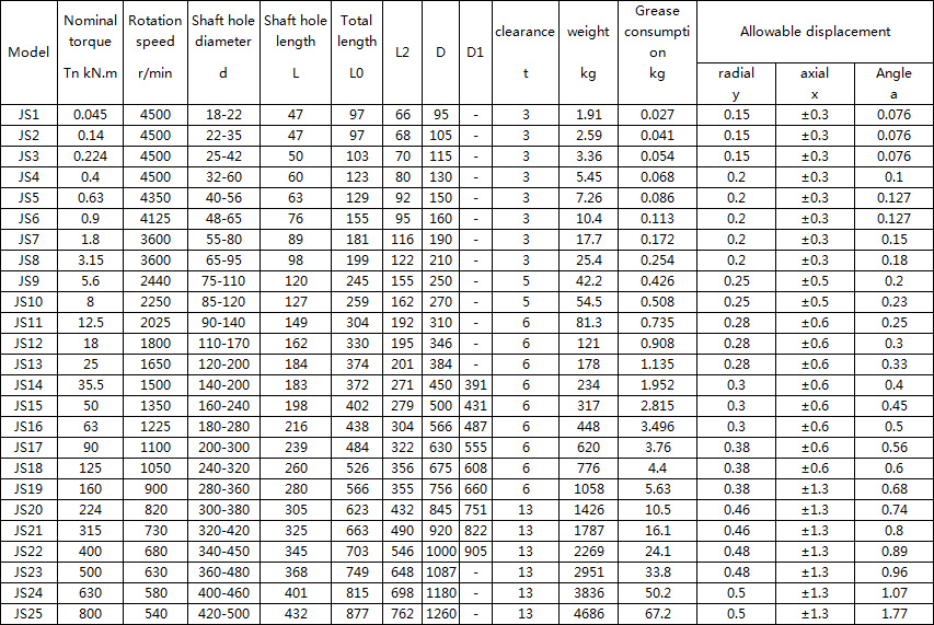 6. Allows for large installation deviation Since the spring piece is in point contact with the toothed surface, the coupling can be made more flexible. It can be installed in normal operation with radial, angular and axial deviations. The specific installation deviation values ??are shown in the other table.