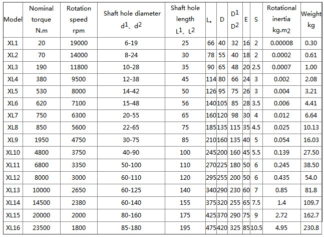 1. XL type star-shaped elastic coupling is made of engineering plastics as elastic element. It is suitable for connecting the transmission shaft system of two coaxial lines. It has the compensation of relative offset, cushioning, shock absorption and wear resistance of two axes. .