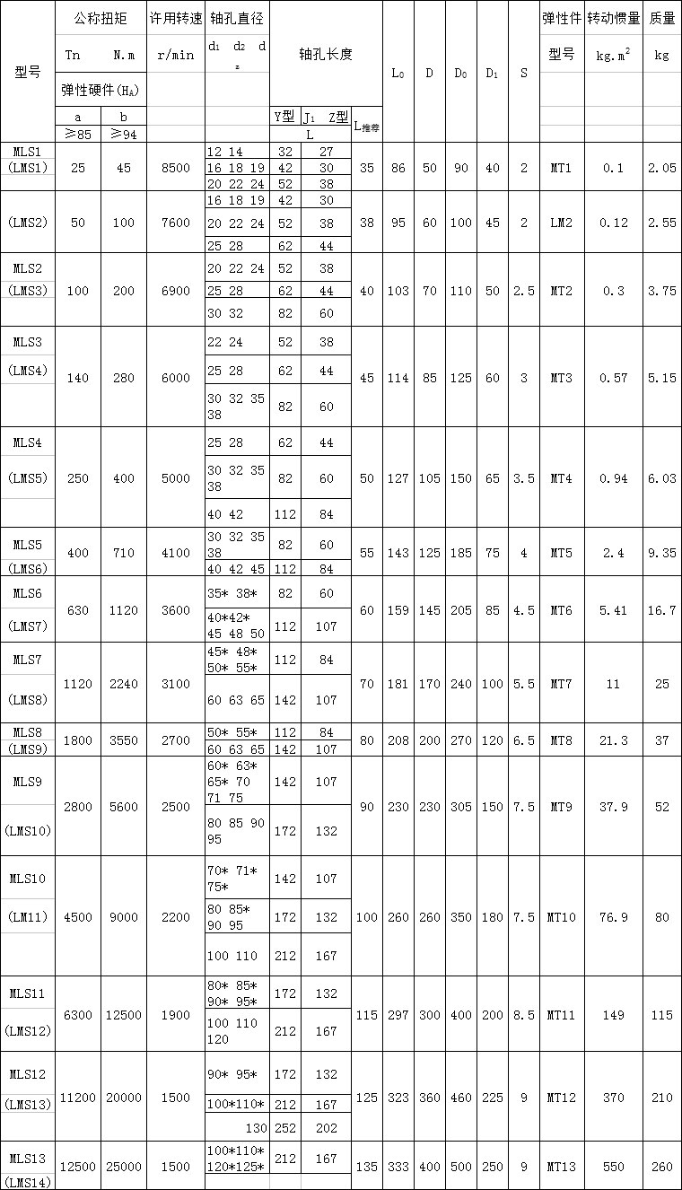 MLS 型梅花形彈性聯(lián)軸器基本參數(shù)和主要尺寸(GB/T5272-2002)mm ![]() |