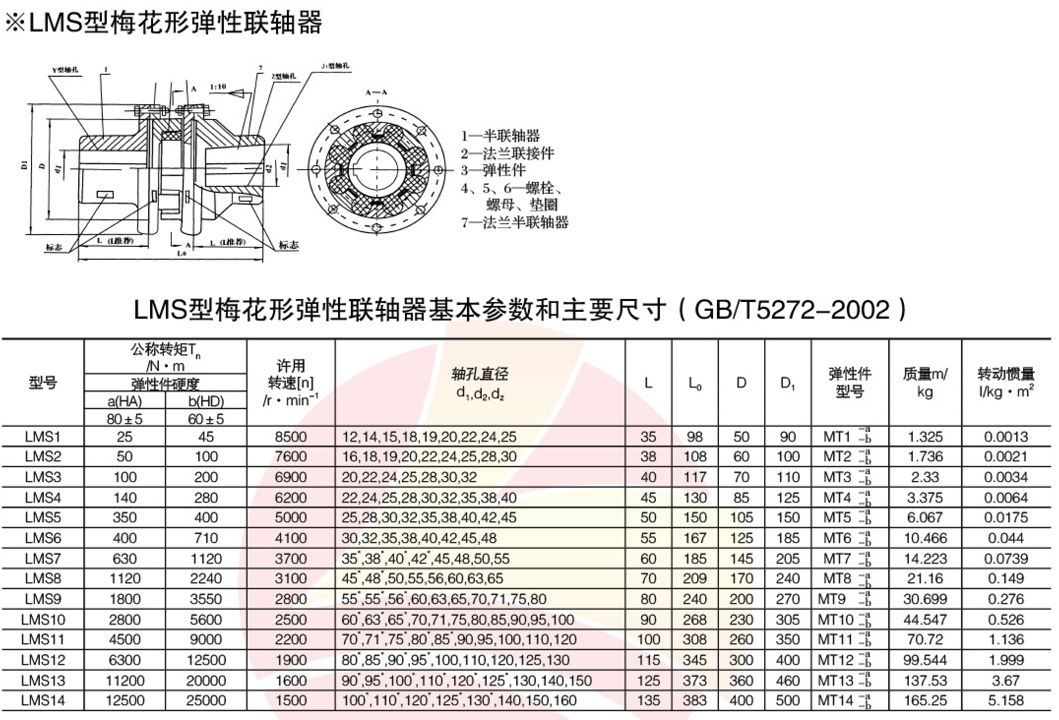 MLS(LMS)梅花彈性聯(lián)軸器 特點(diǎn)及應(yīng)用場(chǎng)合:具有補(bǔ)償兩軸相對(duì)偏移、減振、緩沖性能、徑向尺寸小,結(jié)構(gòu)簡(jiǎn)單、不用潤(rùn)滑、承載能力較高,維護(hù)方使、更換彈性元件需軸向移動(dòng) (MLS型除外),適用于聯(lián)接同軸線,起動(dòng)頻繁,正反轉(zhuǎn)變化,中速、中等轉(zhuǎn)矩傳動(dòng)軸系和要求工作可靠性高的工作部位。不適用于重載、低速及軸向尺寸受艱制,更換彈性元件后兩軸對(duì)中困難的部位。