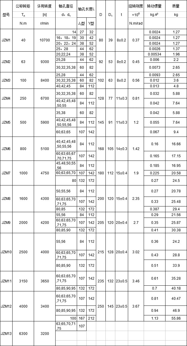 JZM型重型機械用膜片聯(lián)軸器的參數(shù)及主要尺寸: (JB/ZQ 4717-98) mm