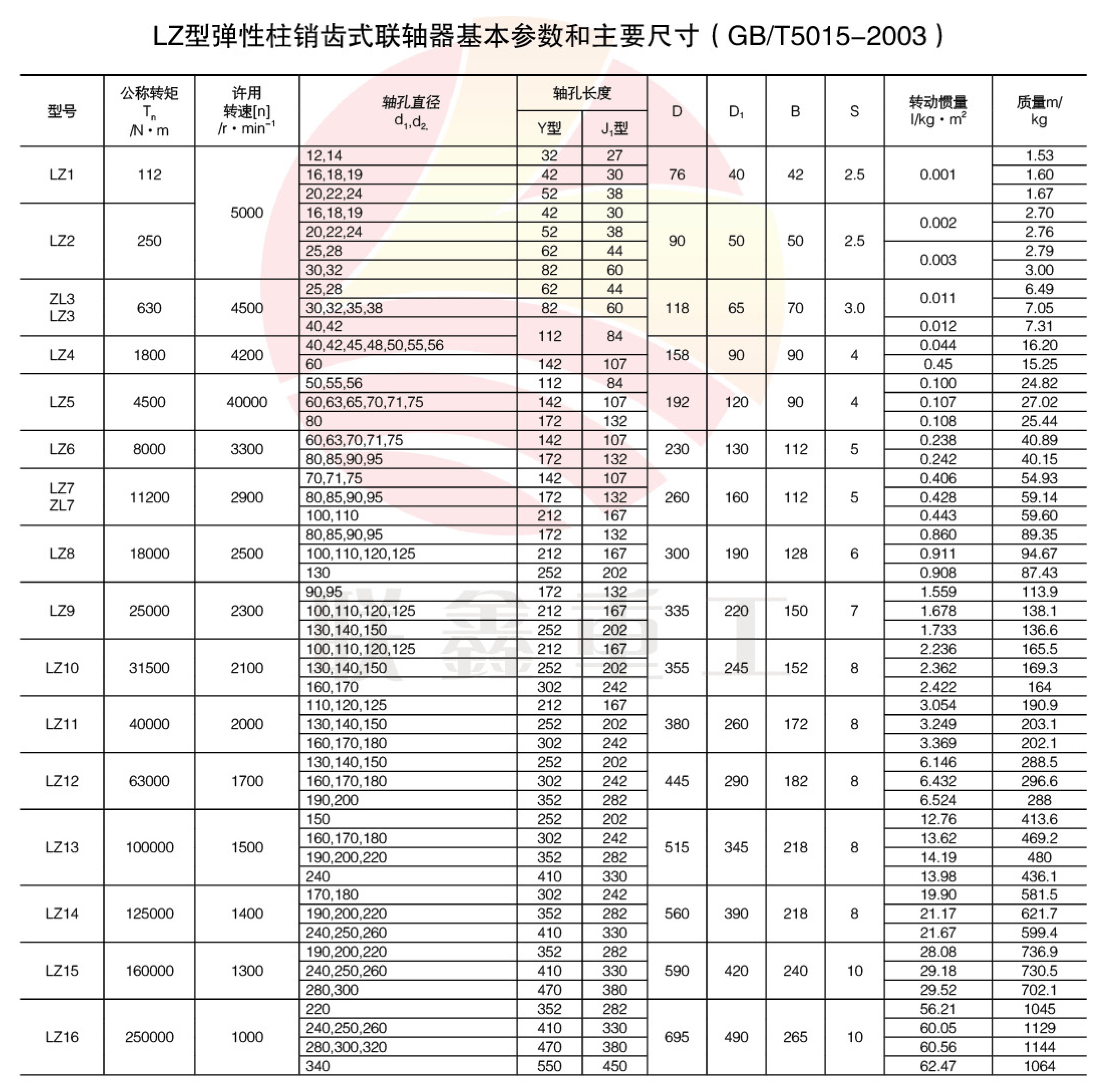 ZL(LZ)型柱銷齒式聯軸器 特點及應用場合:可補償兩軸相對偏移,減振功能差,傳動精度低,傳遞轉矩大,與齒式聯軸器相比,結構簡單,質量輕,制造方便,維護簡便.不用潤滑,部分代替齒式聯軸器,噪聲大,適用于大、中轉矩軸系傳動,不適用于對減振效果要求高和對噪聲需嚴加控制的部位。
