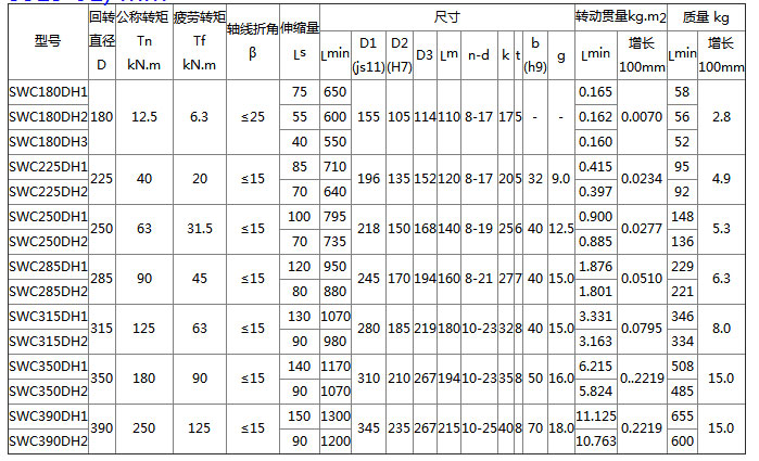 SWC-DH型短伸縮焊接式萬(wàn)向聯(lián)軸器基本參數(shù)與主要尺寸 (JB/T 5513-91) mm
