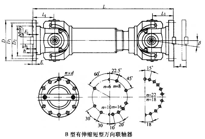 B型十字軸萬向聯(lián)軸器基本參數(shù)和主要尺寸(JB/T 3241-2005) mm